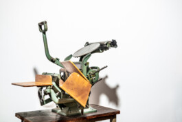 Seit 2017 bin ich jüngstes Mitglied im Buchdruck Museum Hannover e. V., in welchem ich die Schwarze Kunst und damit das Setzen und Drucken von Bleisatz-Buchstaben erlerne. Nachdem ich immer auf der Leihgabe einer Familienstiftung – einem alten Boston Handtiegel – gedruckt habe, bemerkte ich die verstaubte Druckmaschine am anderen Ende des Raumes.